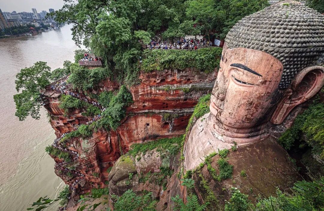 旅の幕開けは、成都天府(双流)国際空港での到着から始まります。空港を出ると、専用車が待機しています。そのまま楽山大仏を目指します。車窓から見える景色を楽しみながら、約2.5時間のドライブを経て、楽山大仏に到着です。